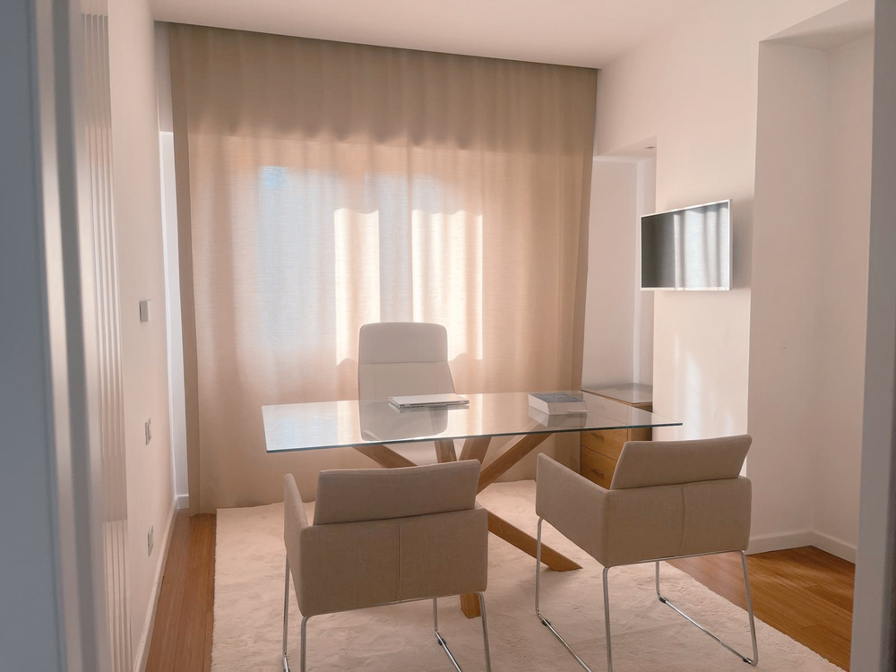 L’ambiente, caratterizzato da linee essenziali, colori neutri e luce naturale, è pensato per favorire concentrazione, calma e chiarezza.